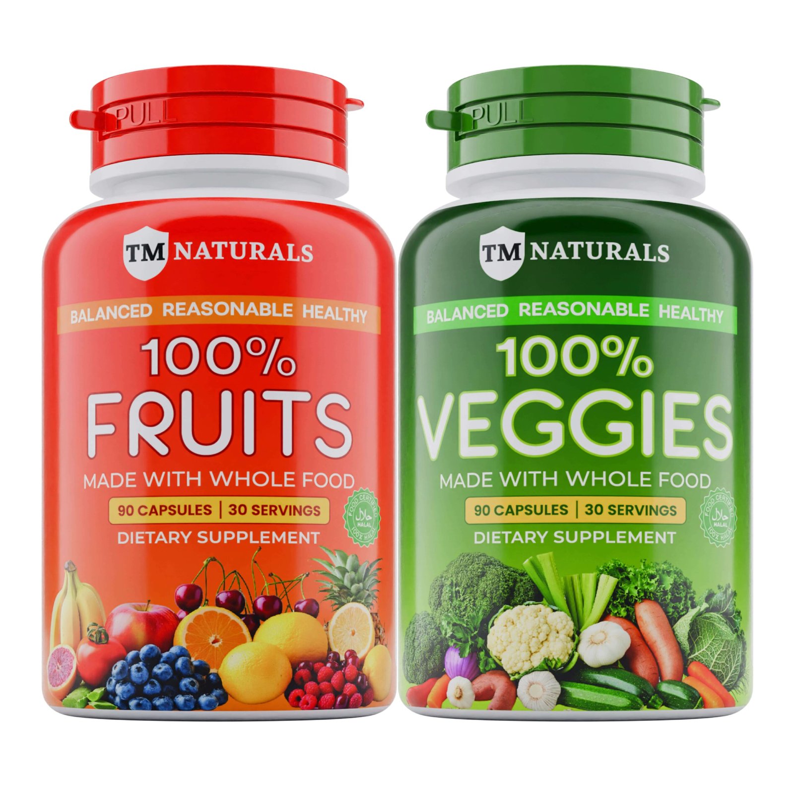 Take 3 capsules from each bottle (Fruits and Veggies) daily with water, preferably with a meal. For best results, use consistently as part of your daily health routine.